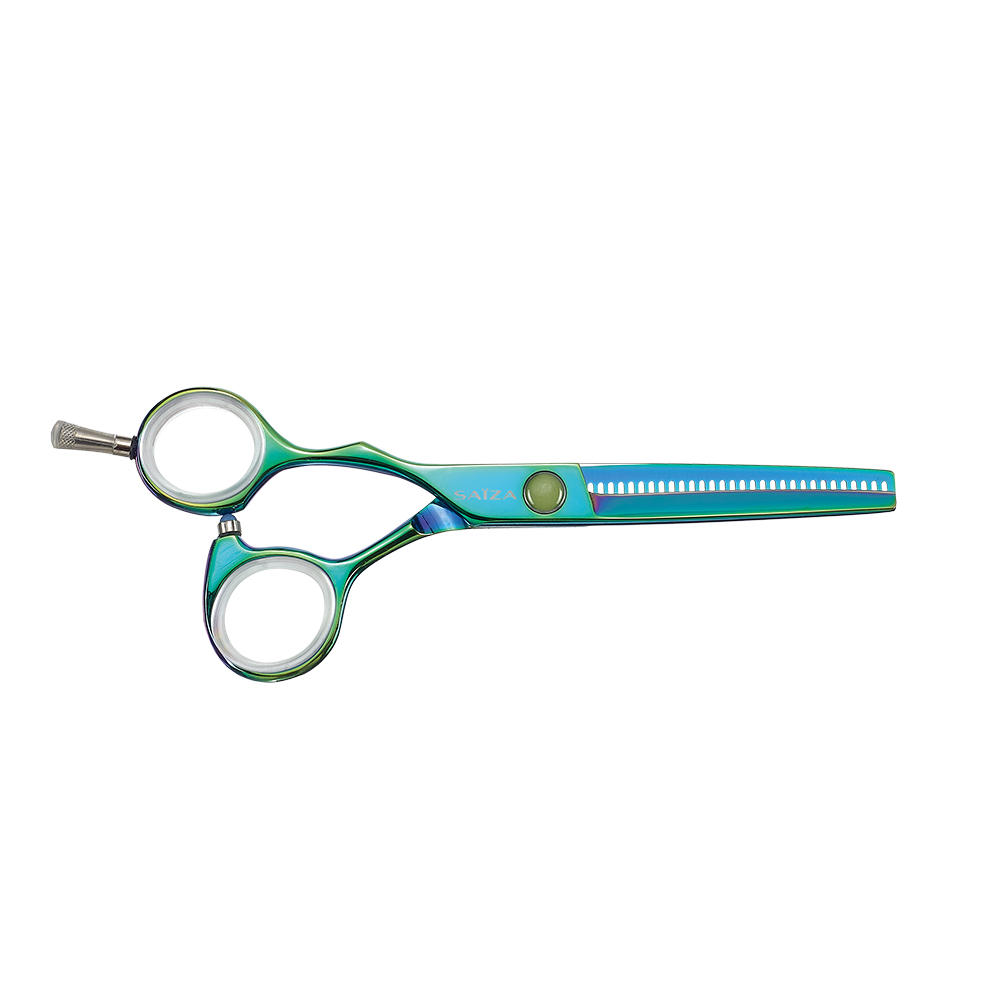 Les ciseaux Saiza sont fabriqués avec le meilleur acier inoxydable japonais et sont dotés de caractéristiques professionnelles telles que des poignées ergonomiques décalées, des bords convexes pour une coupe en douceur et des lames creuses.