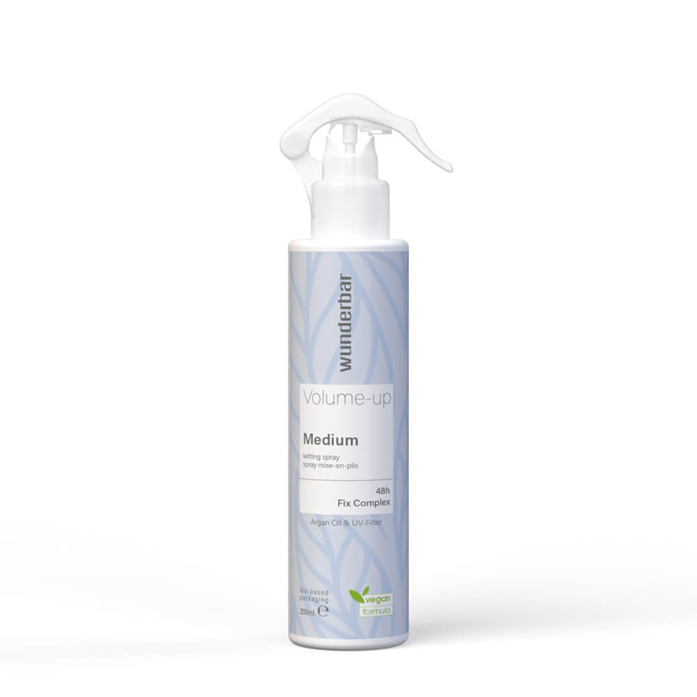 Le Wunderbar Vegan Volume-Up Spray apporte un maximum de volume aux cheveux directement à partir des racines, tout en facilitant le coiffage. Grâce à sa formule légère, le spray cheveux végan offre de nombreux avantages, notamment un volume tout en souplesse et une fixation moyenne, sans alourdir les cheveux et en offrant une protection antistatique supplémentaire pour un coiffage facilité. Le Fix Complex 48h avec résines à effet mémoire donne la possibilité de retravailler les cheveux.