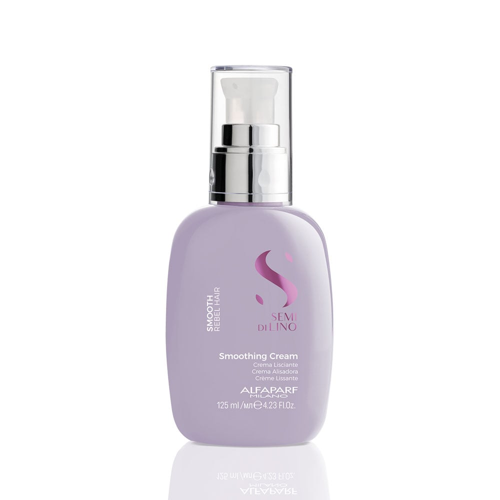 Semi Di Lino Smooth – Cheveux rebelles. La Crème Lissante facilite le brushing en protégeant les cheveux de la chaleur jusqu'à 230°C et de l’humidité, pour un lissage sans frisottis qui dure longtemps.