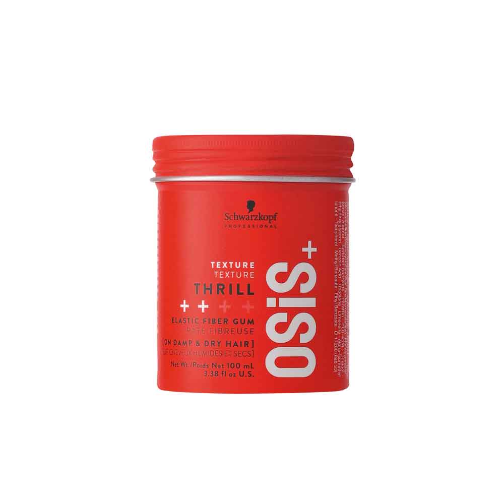 Formulé pour accentuer toutes les textures de cheveux, OSiS Thrill est un chewing-gum à tenue moyenne et à fibres élastiques qui crée une séparation remodelable et rehausse la brillance, tout en réduisant les frisottis et les mèches rebelles.