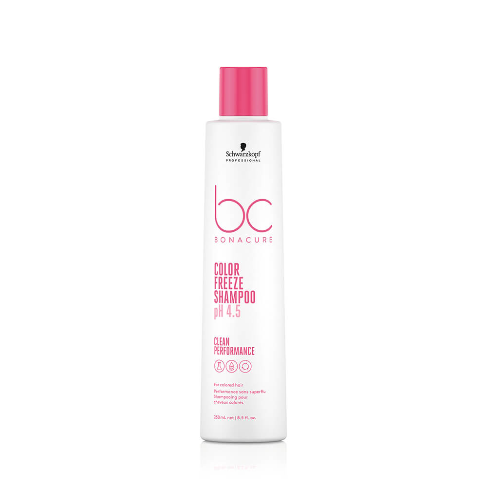 Un shampooing doux de Bonacure Color Freeze, spécialement formulé pour les cheveux colorés. Le cheveu retrouve son niveau de pH optimal pour geler parfaitement les pigments de couleur à l'intérieur de la matrice capillaire, empêchant ainsi la décoloration pour une couleur durable. Idéal pour les services post-coloration et l'entretien à domicile. Sans sulfates SLS/SLES*, sans silicones et sans colorants artificiels.